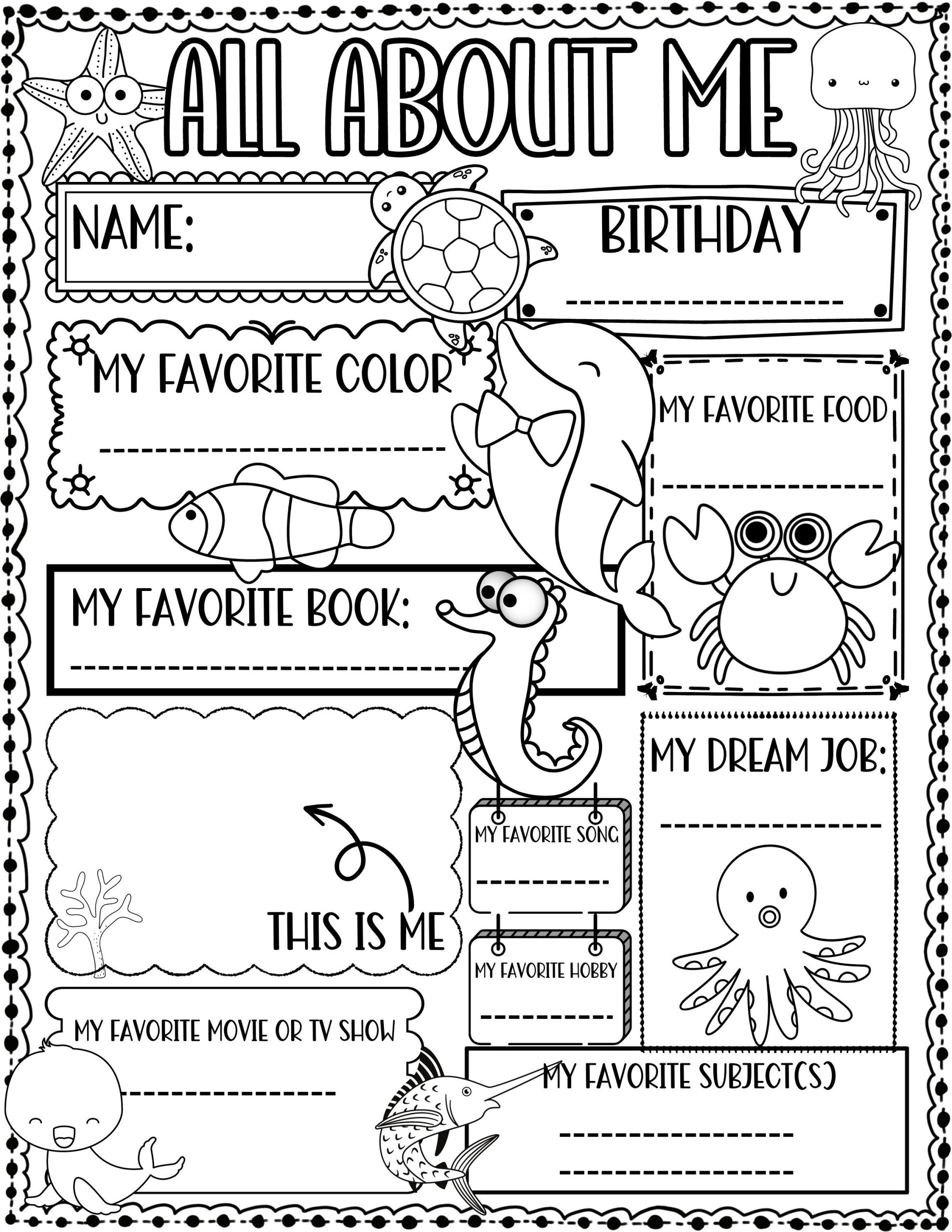 All About Me Worksheet Ocean Animal Theme First Day Of School Activity Made By Teachers