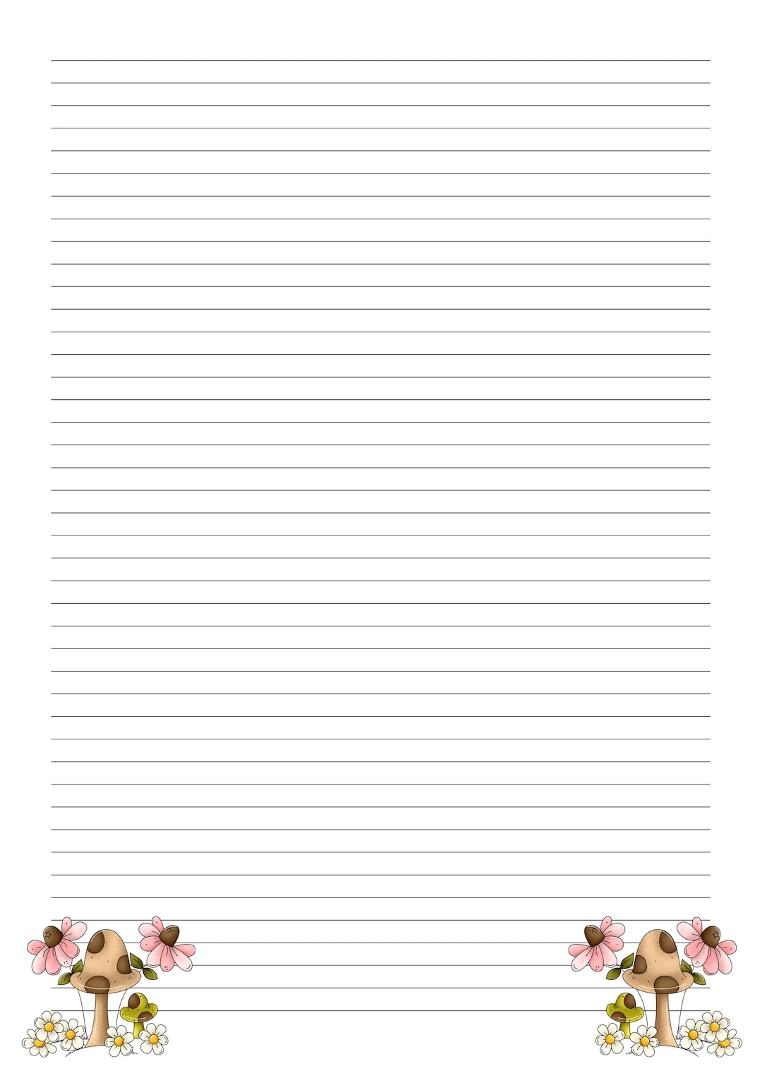 Lined A4 legal Cute Mushroom Themed Writing Paper Printable Instant Download Etsy