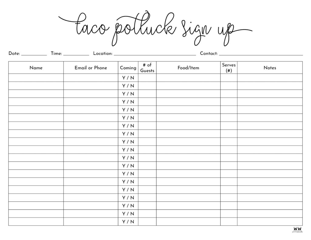 Free Printable Potluck Sign Up Sheets