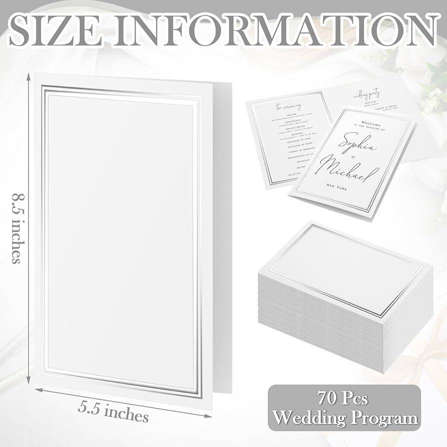 Amazon Fullhawl 70 Pcs Bifold Wedding Program Paper Printable At Home Cards 8 5 X 11 Blank Wedding Invitation Paper Embossed Border Ceremony Program Cardstock For Printer Ceremony Invitation Cards Office Products